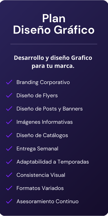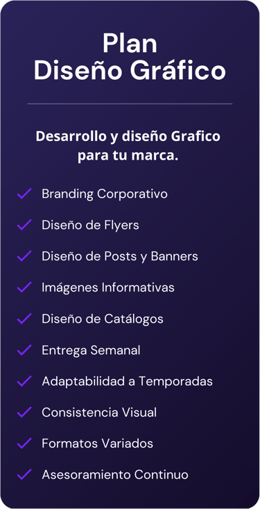 Contamos con planes de Diseño Grafico, Planes Reel o Plan 360° todo incluido.