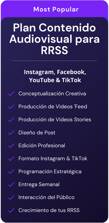 Desarrollamos contenido audiovisual eficaz y atractivo diseñado especialmente para potenciar tu marca y garantizar una presencia única. Nuestra prioridad es impulsar un crecimiento orgánico y de alta calidad para tu proyecto.